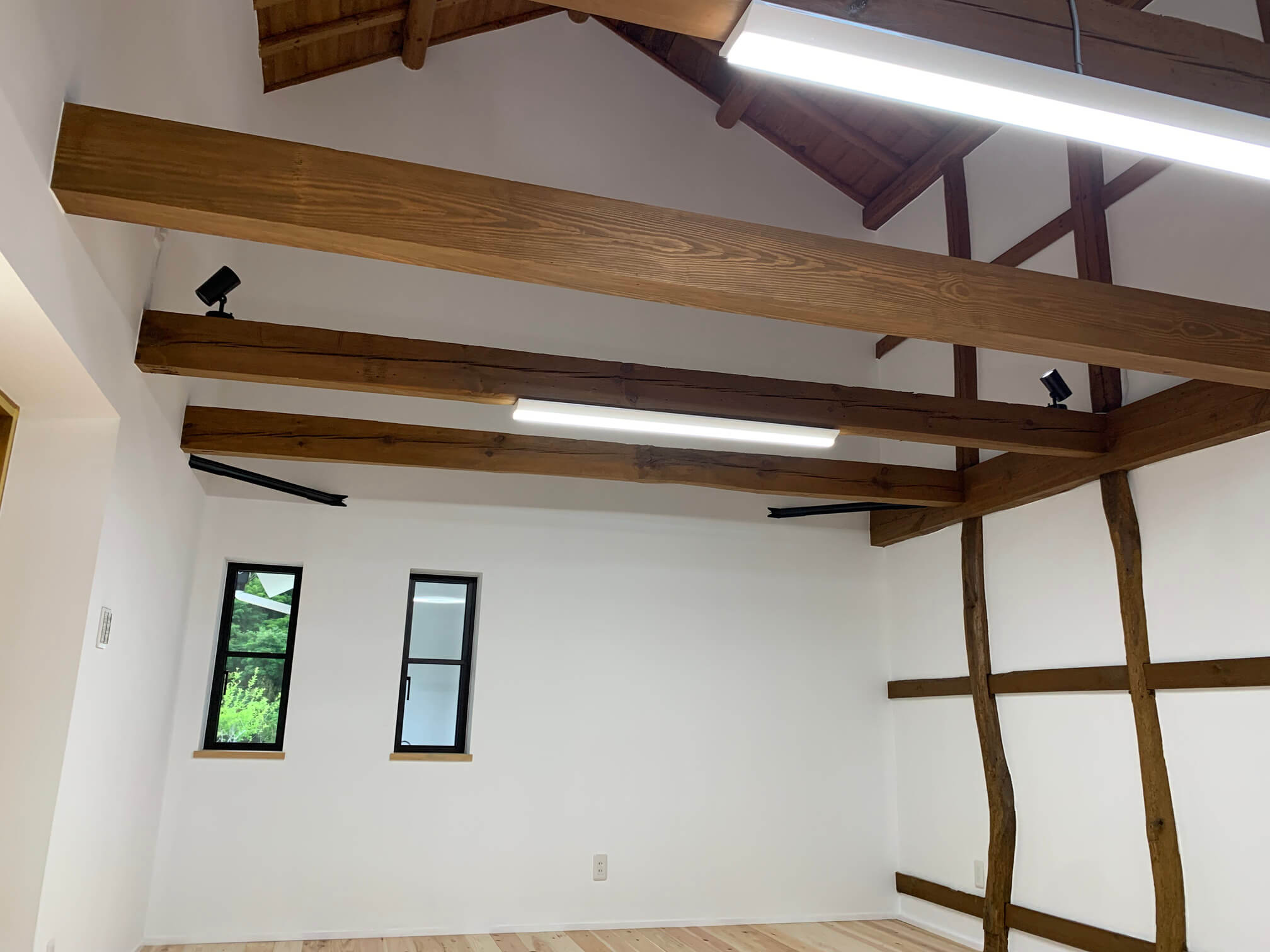 外壁はすべて取り払って作り直し、安全性が確保できない柱や梁は新しい材に交換しました。