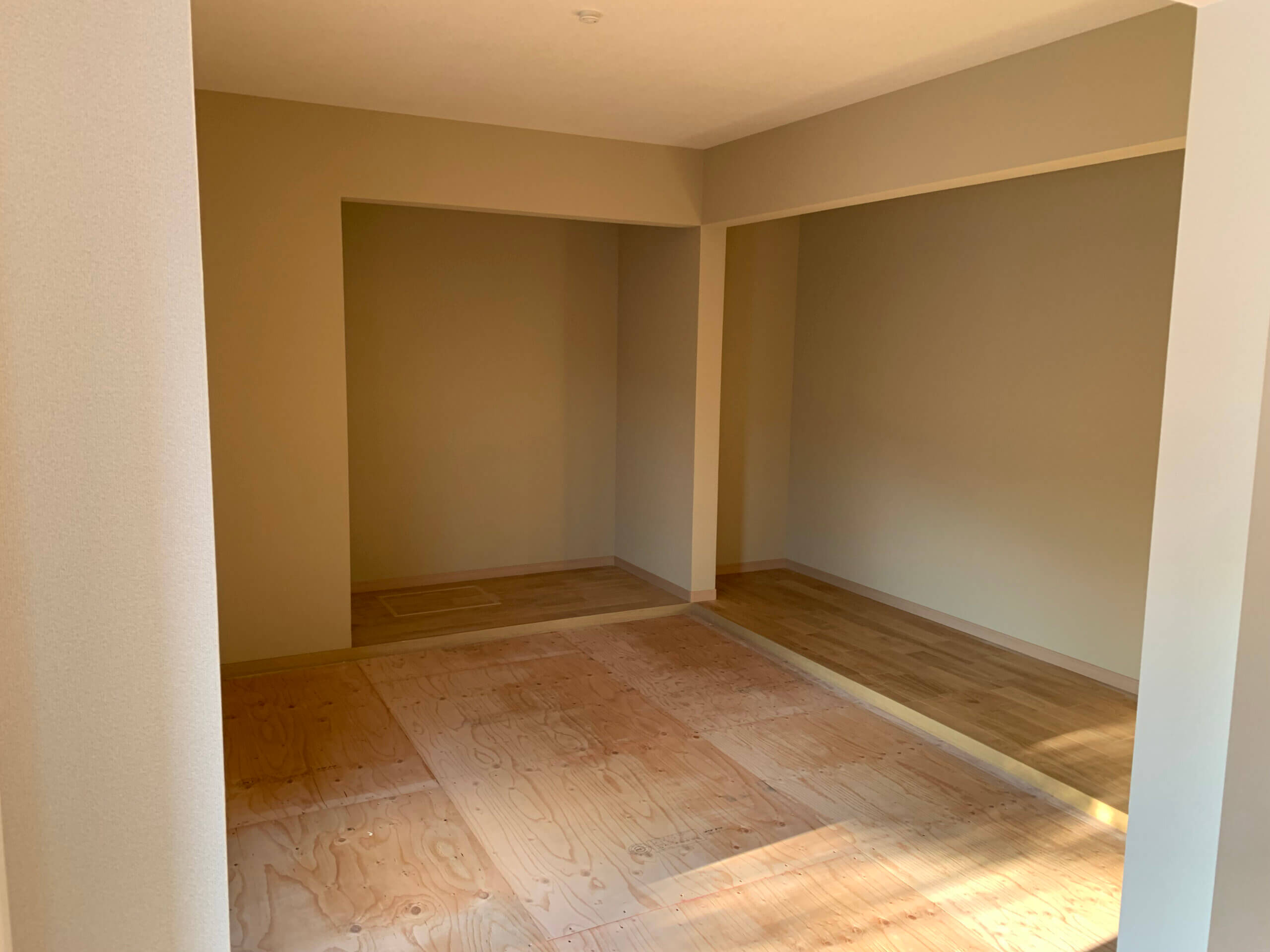 和室を「一段上がった畳スペース」にするため、広縁の高さを基準に、1階全体の床を既存より約15cm低く施工し直しました。